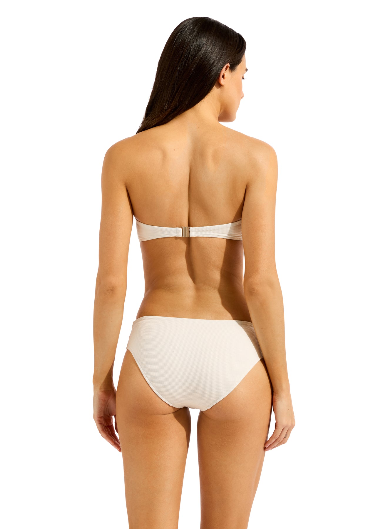 Seafolly Bandwave Trim Front Bandeau In Ecru