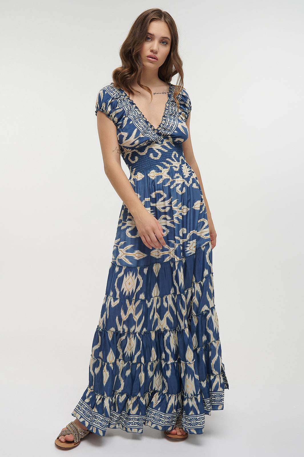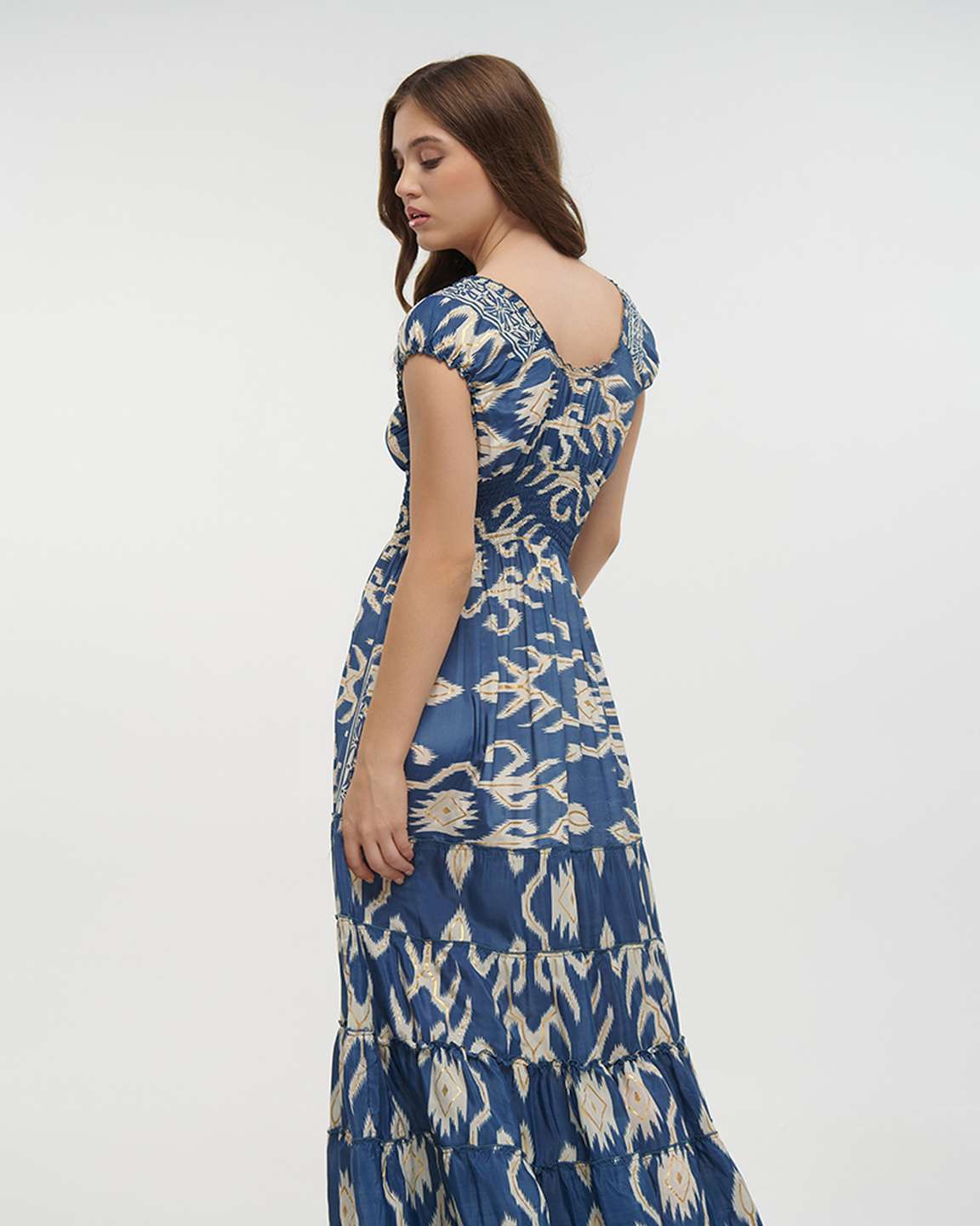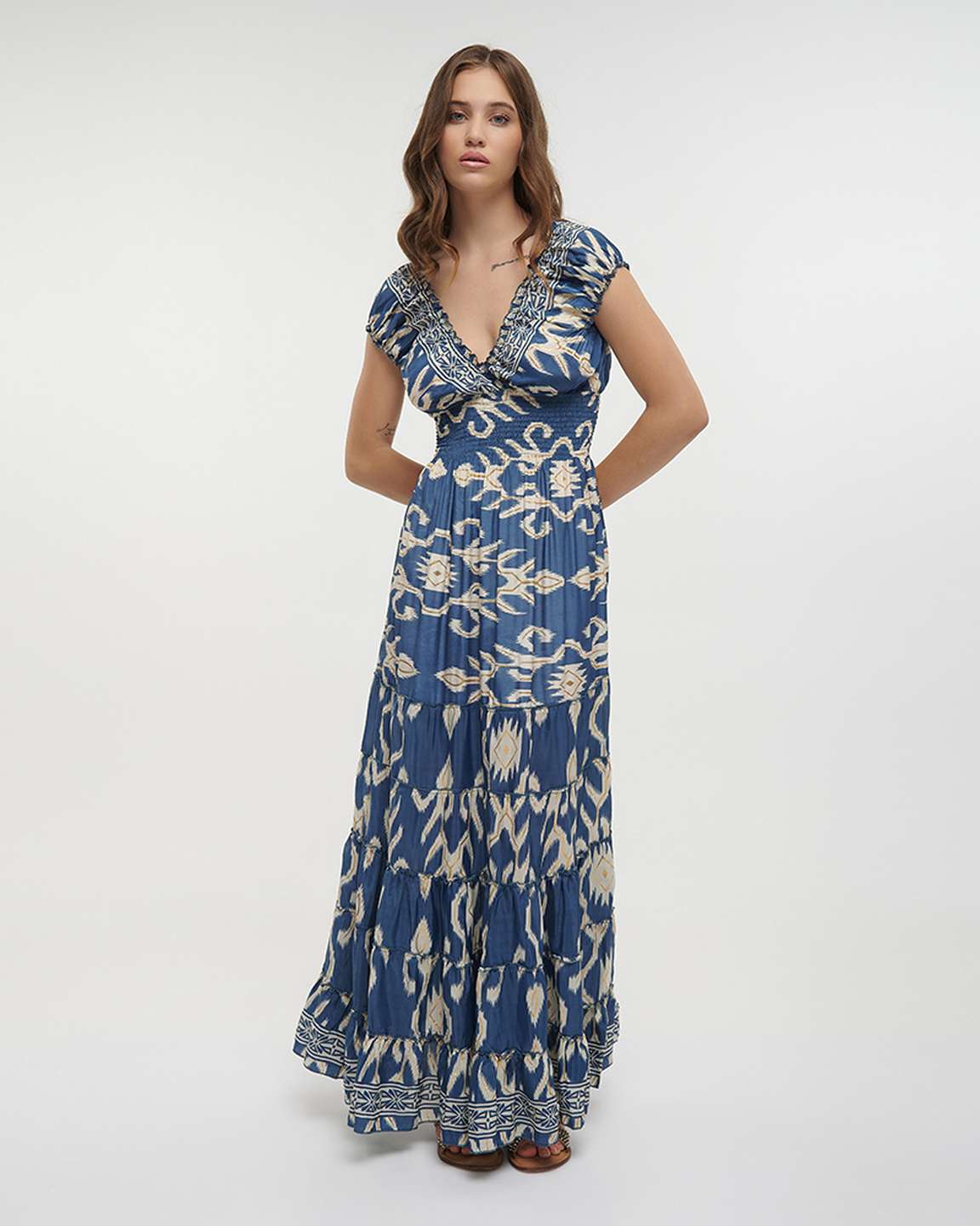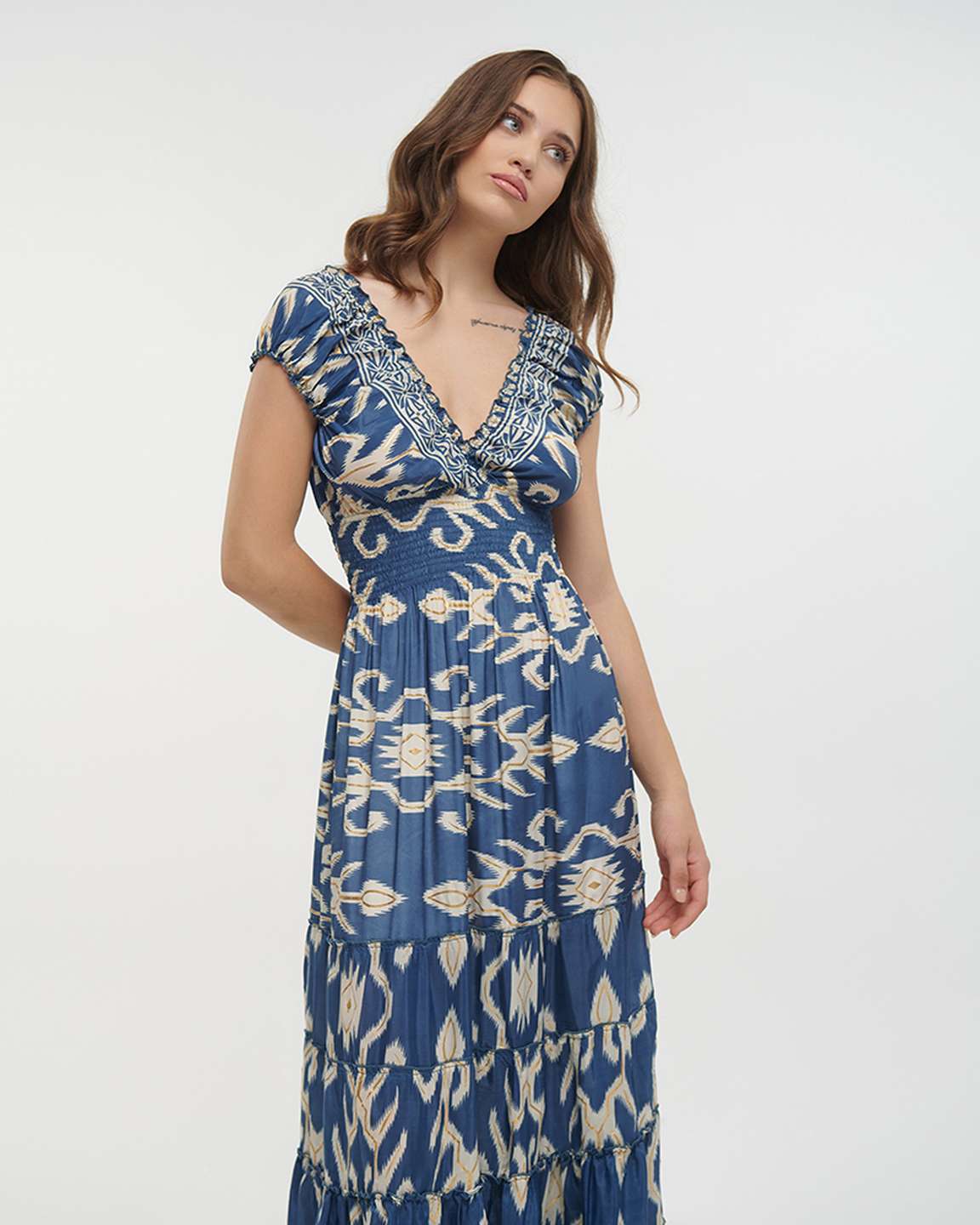 • Tiered maxi skirt for movement and an easy drape