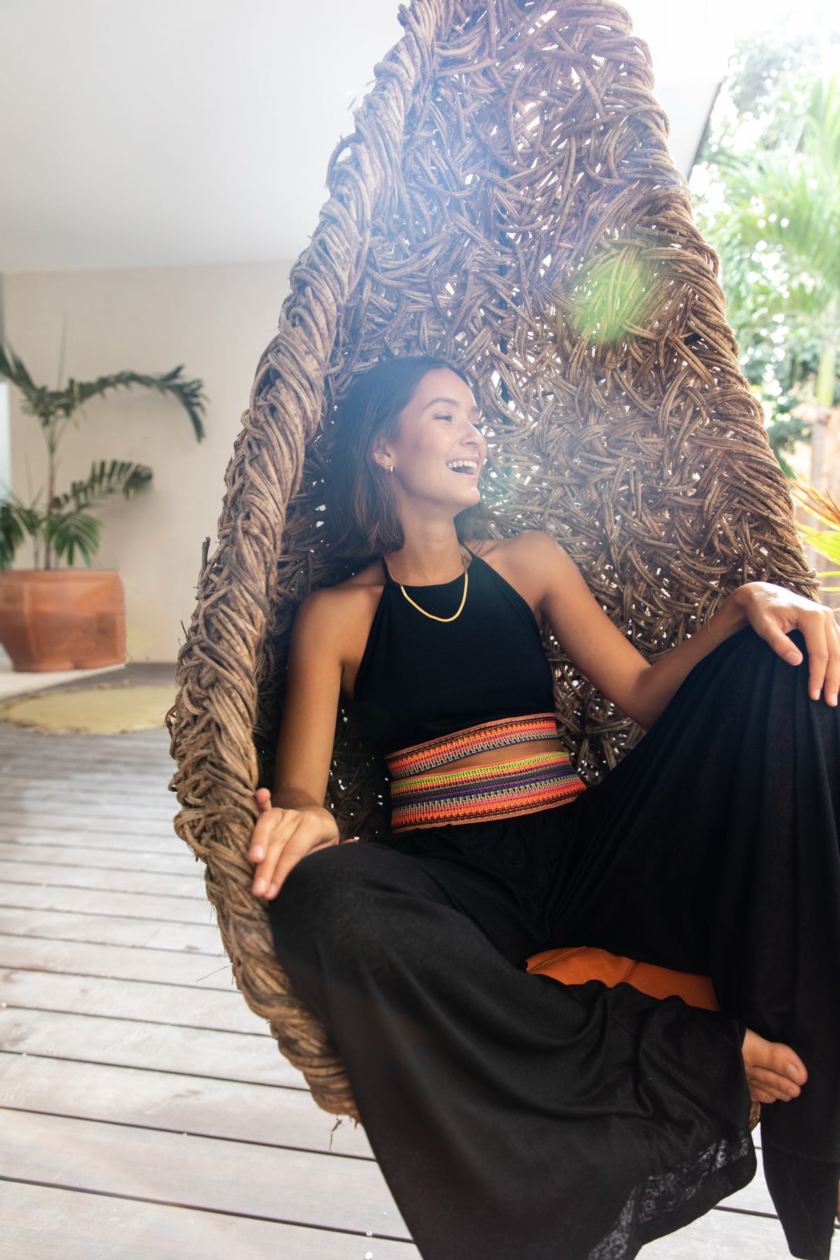 This two-piece set features a halter top with double-layered light burnout fabric with a semi-sheer feel and adjustable straps at the neck and waist, as well as wide-leg pants with an elastic waistband and colourful signature Inca trim, in an elegant free-flowing fit. Designed to wear over swimwear