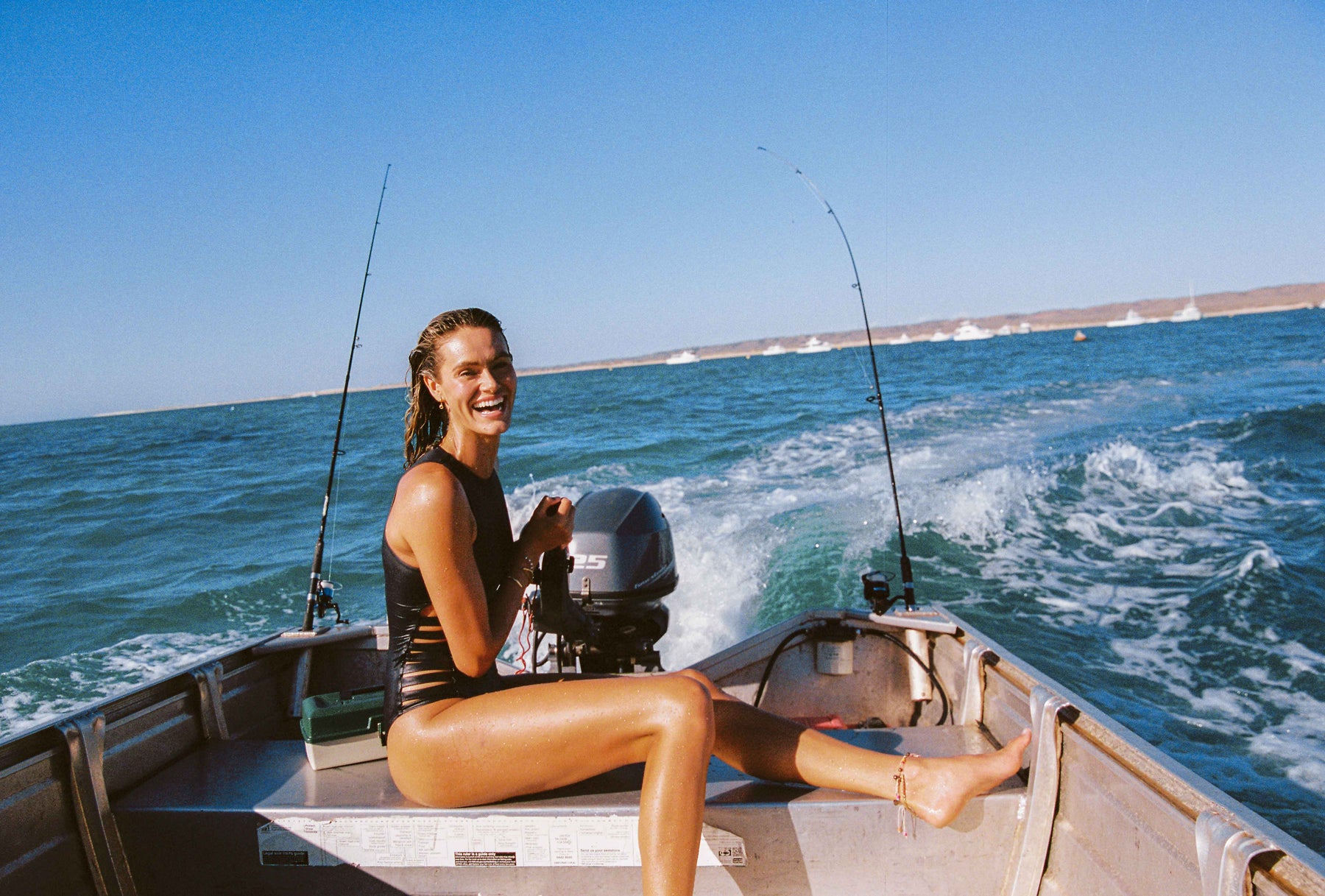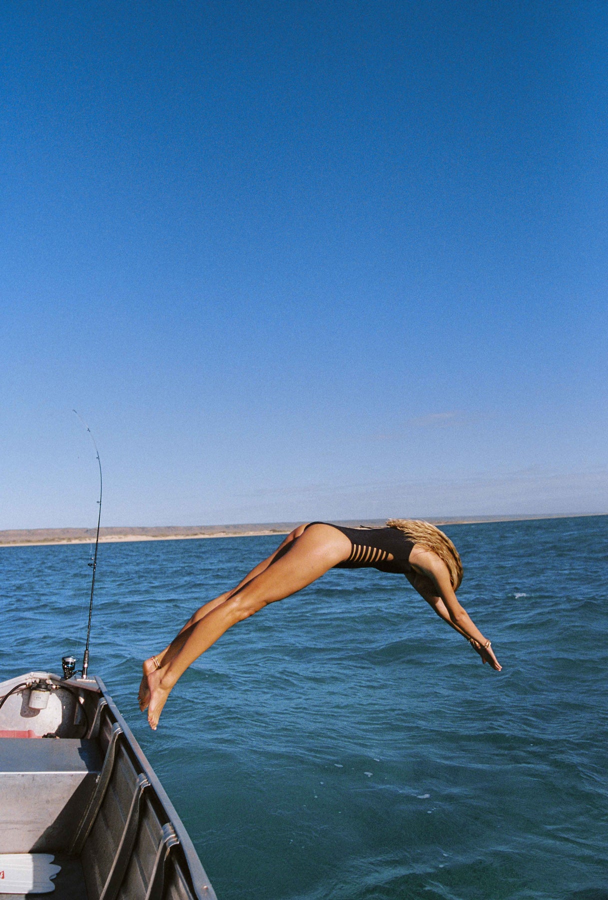 A classic sporty high neck suit, perfect for swimming but with multi-strap ladder detailing from the hip to the ribs, elevating this to a super sleek stylish swimsuit.